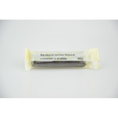 Zloženie: Karobová poleva 80% (fruktóza, ztužený kokosový a repkový olej, karobový prášok 20%, krém. prášok, glukózový sirup, kokosový olej, emulátor E472 – Sójový lecitín, fosforečnan draselný, oxid kremičitý), aroma, zmes 20% (arašidy, marhule, hrozienka).