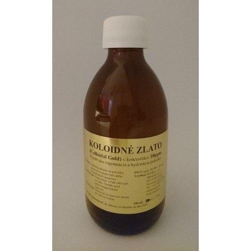 Koloidné zlato v koncentrácií 10 ppm – roztok. Podľa smerníc platných v EU sú výrobky prvkov v koloidnej forme určené výhradne na vonkajšie použitie a teda sa nemôžu užívať vnútorne (t.j. piť). Upozornenie: Výrobok nie je určený pre osoby, ktoré sú alergi
