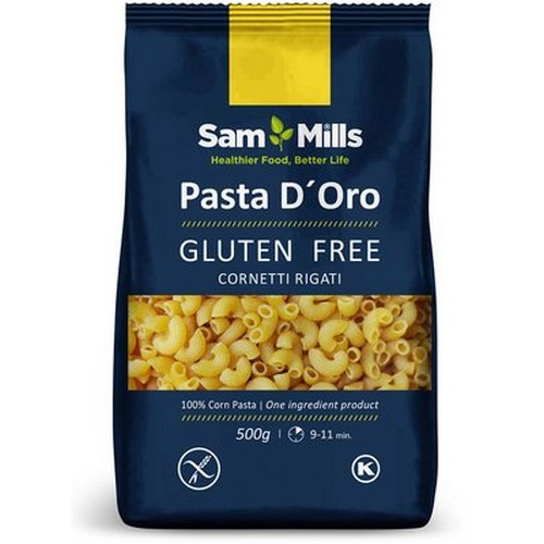 Výrobok je vhodný pre bezlepkovú diétu. Neobsahuje lepok, pšenicu, vajcia, mlieko, sóju ani cholesterol. Majú nízky obsah tuku a vysoký obsah nutrične prospešných látok. Zlaté kukuričné cestoviny Sam Mills je zdravá alternatíva pšeničných cestovín. Pre svoj nízky obsah tuku, vysoký obsah nutrične prospešných látok, nezameniteľnú chuť a konzistenciu si ich zamilujete Vy aj Vaša rodina. Cestoviny Sam Mills sú ľahko stráviteľné, ich príprava je rýchla a môžete ich použiť na všetky Vaše obľúbená cestovinová jedla.
