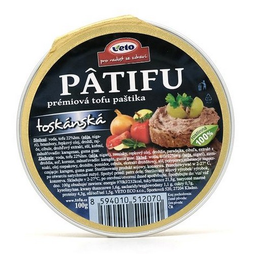 Prémiová tofu paštéta v toskánskom štýle. Vyniká veľmi jemnou konzistenciou a výbornou vyváženou chuťou, ktorá pripomína mäsovú paštétu.