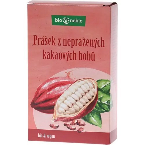 Bio prášok z nepražených kakaových bôbov so zníženým obsahom tuku.