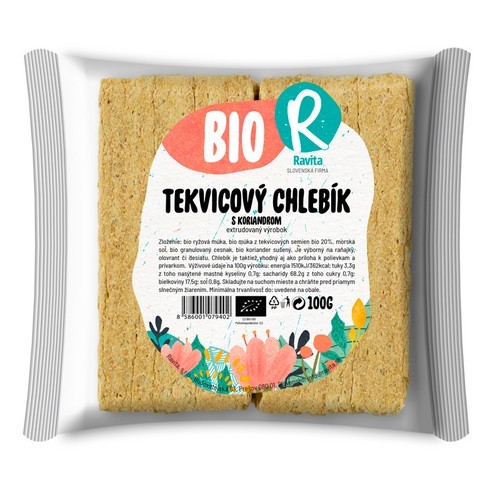 Je vyrobený extrúziou. Extrudovaný BIO chlebík je tiež vhodný ako príloha k polievkam, prívarkom a šalátom.