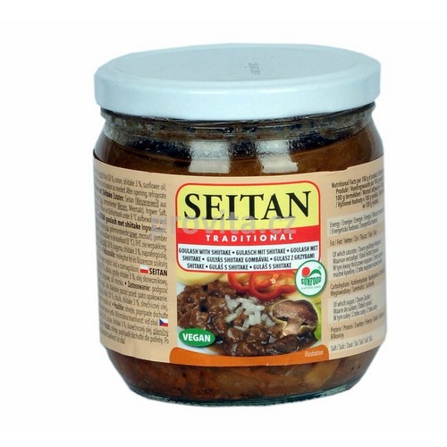 Vhodný napríklad s pšenovými knedľami, ryžou alebo cestovinami. Seitan je rastlinná bielkovina z pšeničnej múky, ktorá sa získava vymývaním škrobu. Je chutnou náhradou mäsa. Dá sa použiť všade tam, kde bežne používame mäso. Má vysoký obsah bielkovín (25%), vysokú schopnosť nasýtenia a je ľahko stráviteľný.