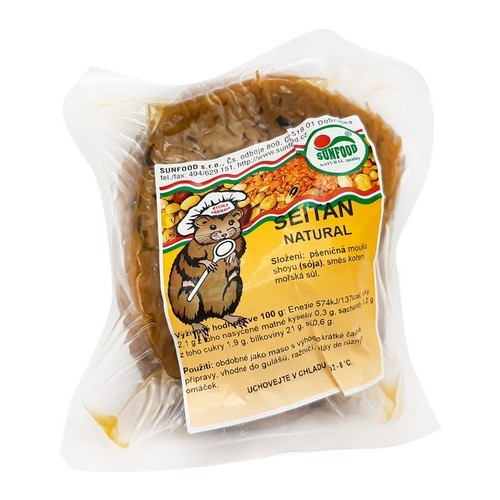 Rastlinná alternatíva mäsa. Seitan je ručne vyrobený z pšeničnej múky, ochutený sójovou omáčkou, zeleninou a korením. Výhodou je kratšia časová príprava než pri bežnom mäse. Môžeme ho použiť do gulášov, na plátky alebo kocky do omáčok, aj na vyprážanie.