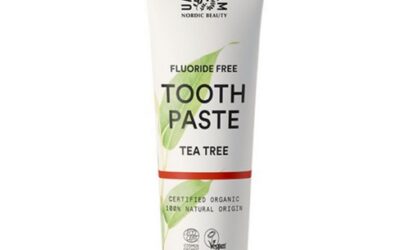 Antibakteriálna zubná pasta Urtekram Tea Tree obsahuje antiseptické rastlinné výťažky a pôsobí tak protizápalovo.